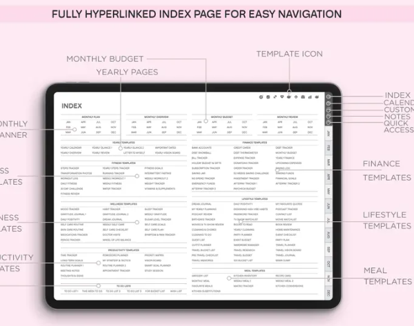We strongly recommend usage on an iPad Pro / iPad Air / iPad with an Apple Pencil (or a stylus) and the use of either Goodnotes or Notability. Please note that this planner is not suitable for use on mobile phones nor for printing.